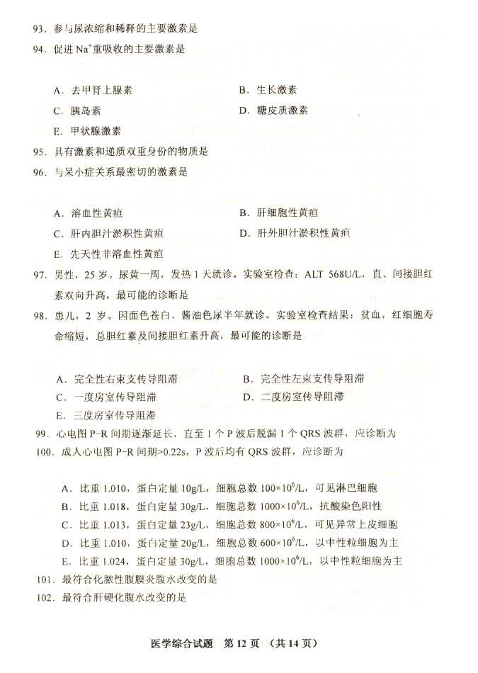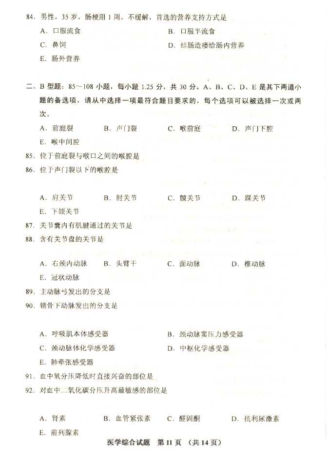 2011年全国成人高考专升本《医学综合》试题及答案