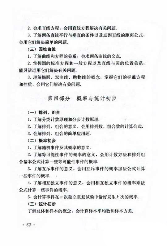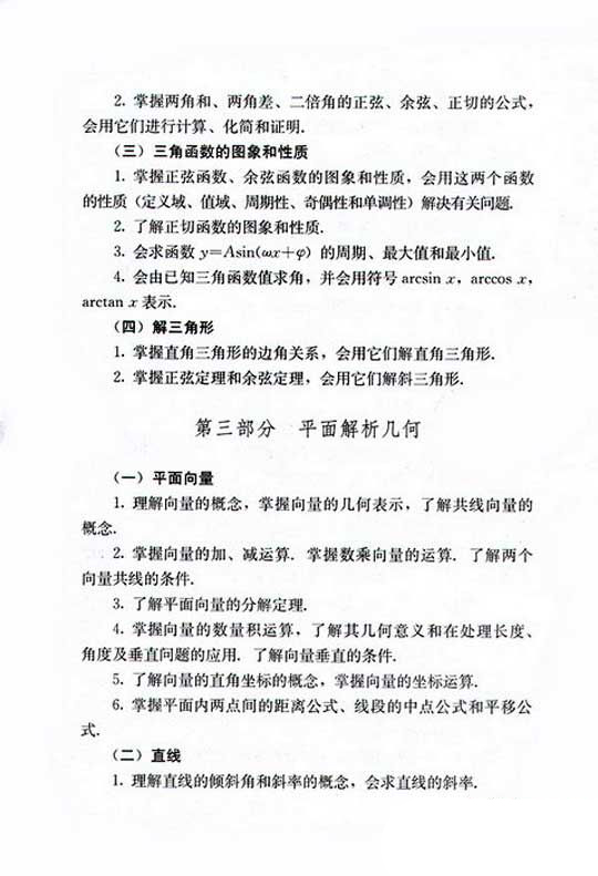 2019年成人高考高起点数学复习考试大纲
