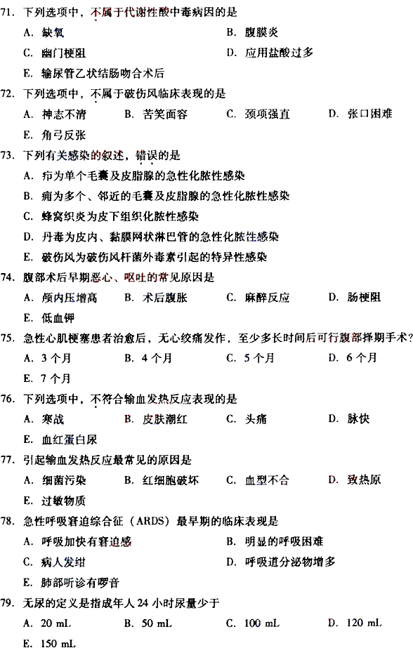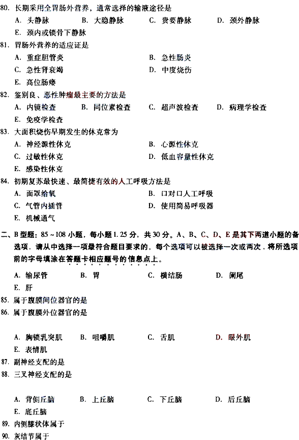 2010年全国成人高考专升本《医学综合》试题及答案